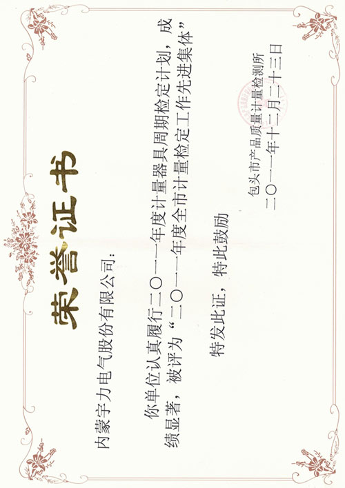 2011全市計(jì)量檢定工作先進(jìn)集體