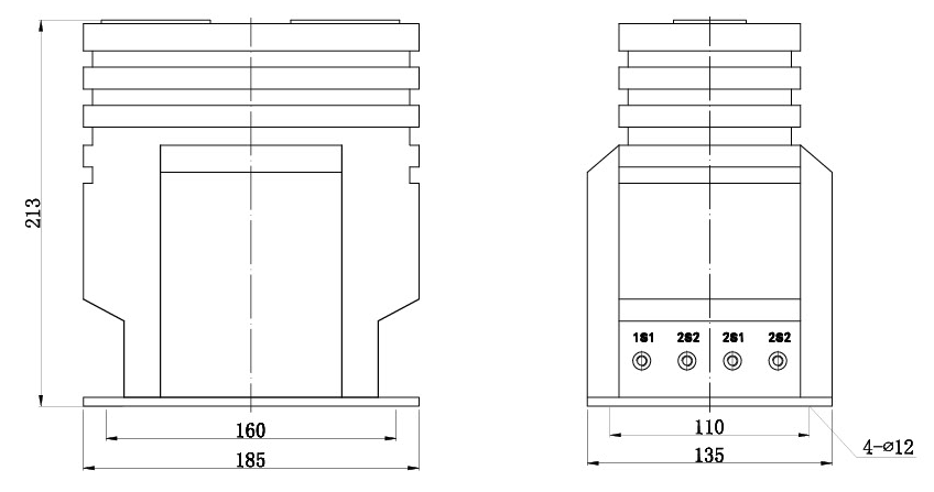 本型電流互感器為環(huán)氧樹脂真空澆注全封閉支柱式結(jié)構(gòu), 主要適用于額定頻率為50Hz或60Hz, 額定電壓10kV及以下電力系統(tǒng)中作電能計(jì)量、 電流測量和繼電保護(hù)用。